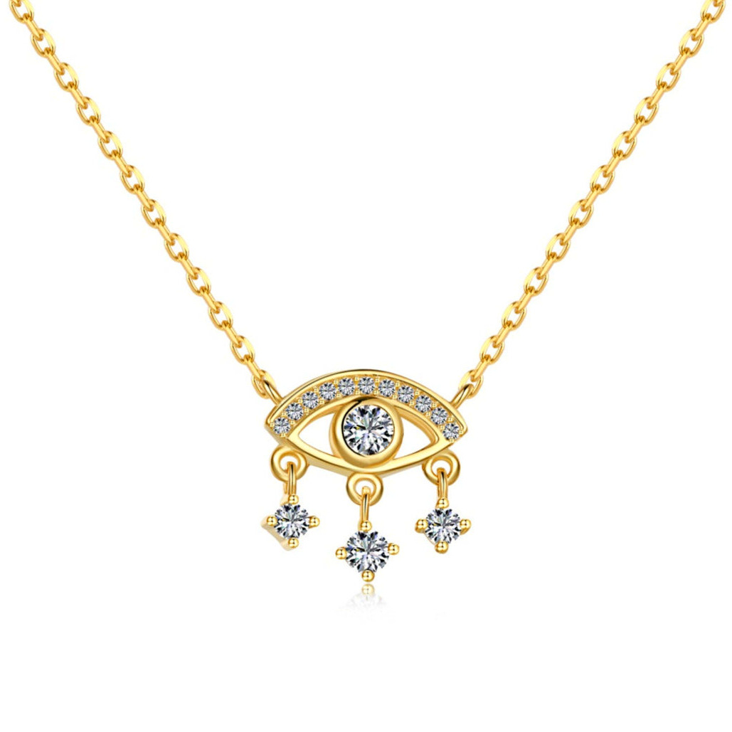 A modern interpretation of a timeless motif, this necklace is adorned with dazzling stones that harmoniously blend tradition with contemporary elegance. The iconic eye pendant offers both protection and refined beauty, while the adjustable 925 Sterling Silver chain ensures a perfect and comfortable fit.